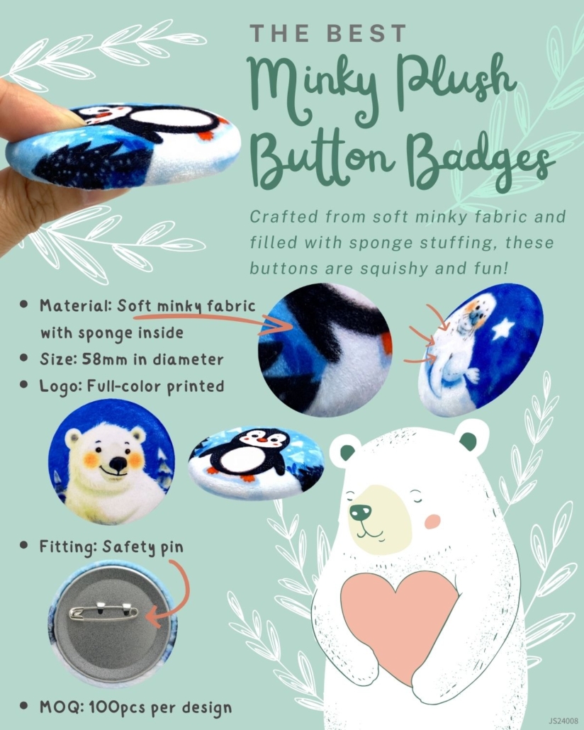 販促品カスタムデザインミンキーボタンバッジ